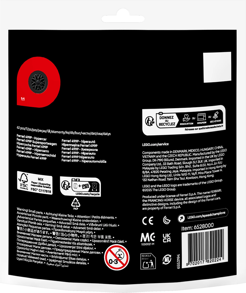 • Authentieke details: De LEGO versie van de Ferrari 499P is boordevol authentieke details, van de aerodynamische carrosserie tot de krachtige motor.