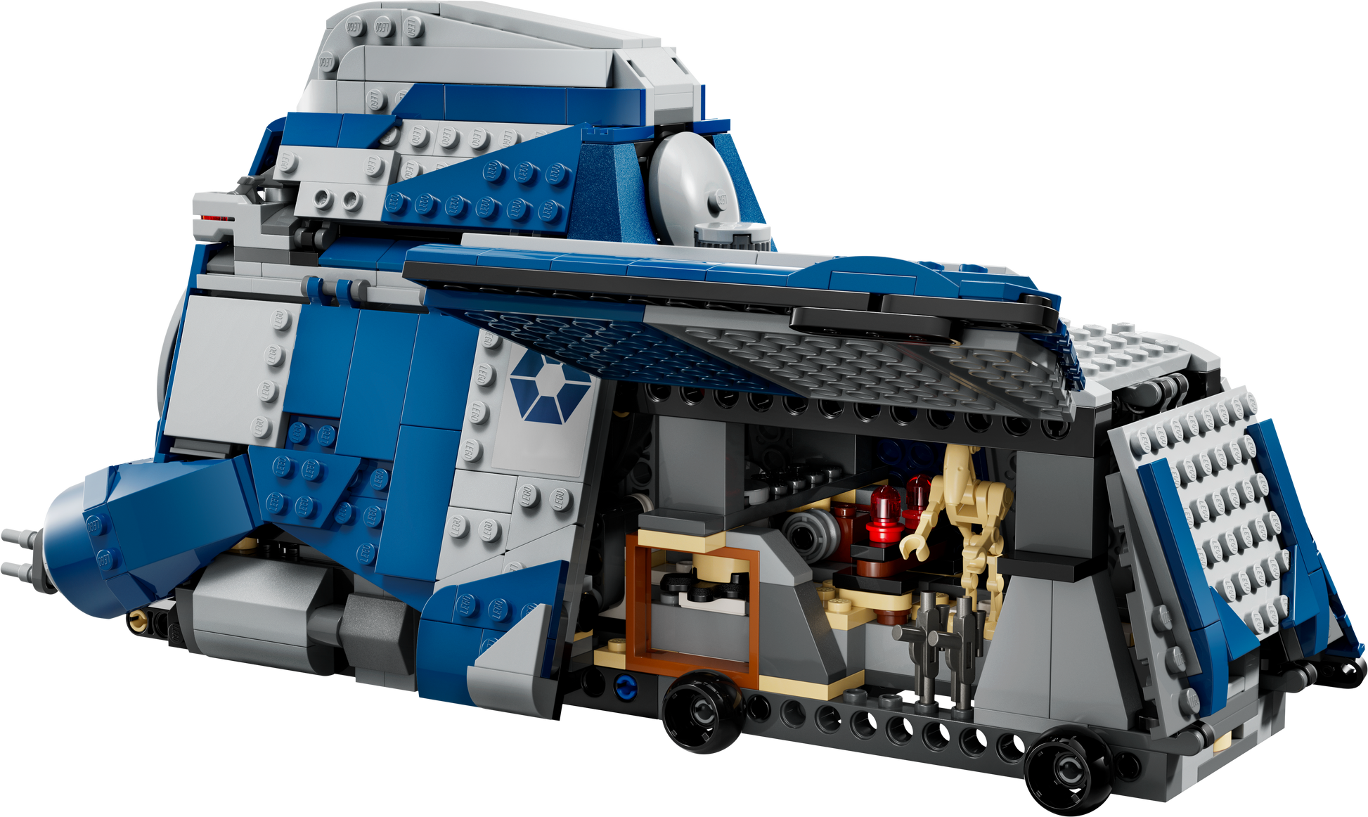 Belangrijkste kenmerken: Uitschuifbaar droid-rek, opvouwbare zijpanelen, cockpit, STAP speeder, 2 noppenschieters, verborgen wielen.
