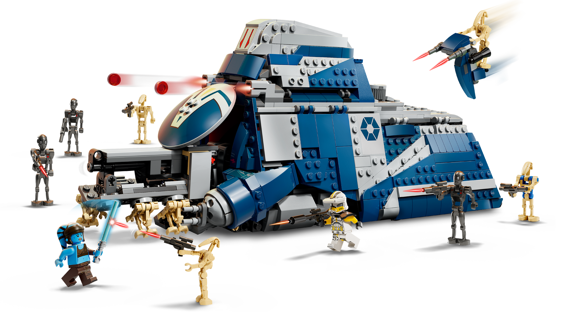 Authentieke Details en Speelfuncties: De MTT is boordevol authentieke details uit The Clone Wars. De opvouwbare zijpanelen bieden gemakkelijke toegang tot het gedetailleerde interieur, inclusief een pilotencockpit. Een STAP speeder kan worden opgeborgen in het achtercompartiment en twee noppenschieters zorgen voor extra vuurkracht. Verborgen wielen zorgen voor een soepele beweging over vlakke oppervlakken, waardoor de MTT klaar is voor elke aanval.