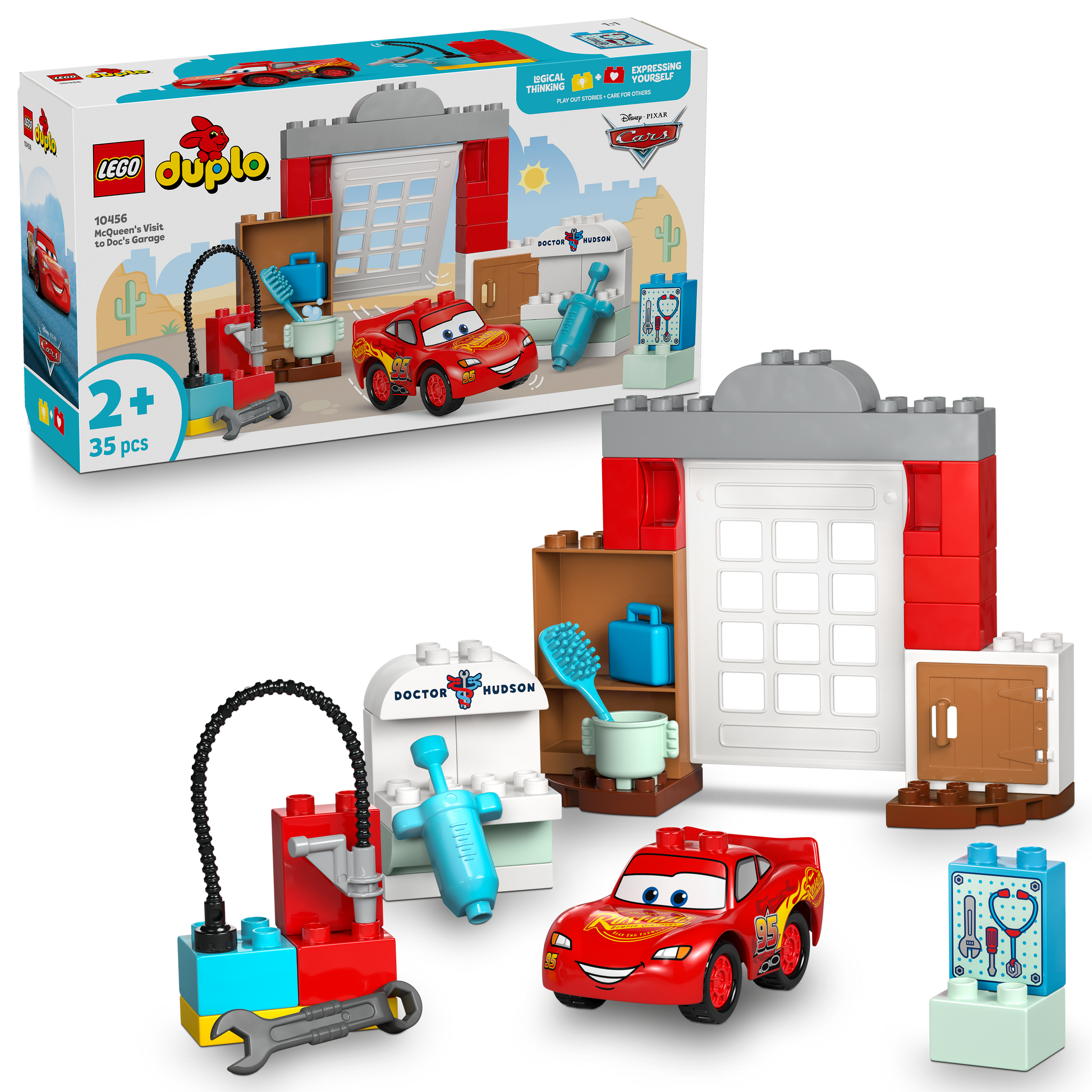 #LEGO #DUPLO #Cars #McQueen #DocHudson #10456 #DisneyPixar #2TTOYS #Bouwset #Peuters #Kleuters #Speelgoed #Auto's #Garage