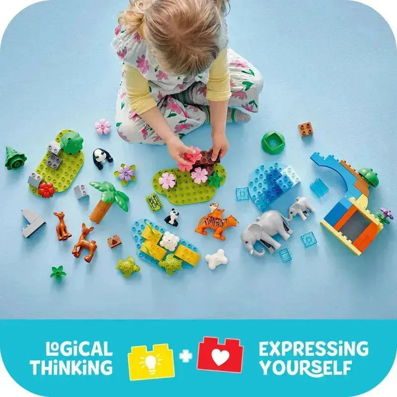 Met deze veelzijdige LEGO DUPLO set kunnen jonge ontdekkers hun eigen safaripark creëren. Bouw een olifantsfamilie, een leeuwenfamilie of een giraffenfamilie, of combineer de elementen voor eindeloze speelmogelijkheden. Deze set is perfect voor kinderen die van dieren en bouwen houden.